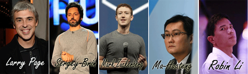 4-5 الصينيان Tencent’s Ma Huateng (رقم 53) و Baidu’s Robin Li (رقم 41) وهما يمتلكان أكبر شركتين في الصين تعملان في مجال الإنترنت وعمرهما 43 و 45 عاما وثروتهما تتجاوز 15 مليار دولار.