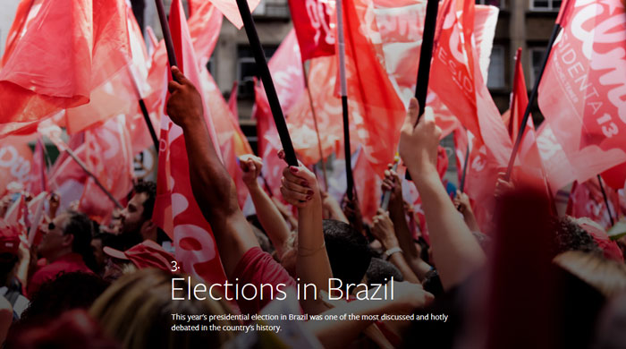 Barzil-Election نشرت 29/12/2014 في 700 × 390 في عام 2014 علي الفيسبوك → السابق التالي ← الإنتخابات الرئاسية في البرازيل كانت من أسخن الأحداث هذا العام علي الفيسبوك