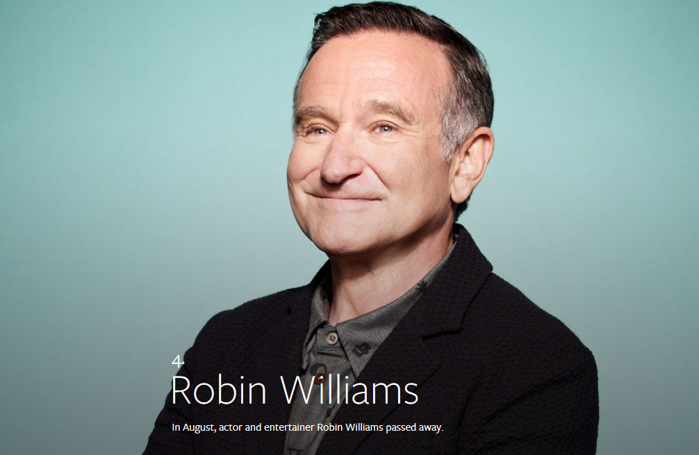 Robin-Williams نشرت 29/12/2014 في 1006 × 655 في عام 2014 علي الفيسبوك → السابق التالي ← في مأساة إنسانية أنتحر في شهر أغسطس الممثل الكوميدي المحبوب روبين ويليامز