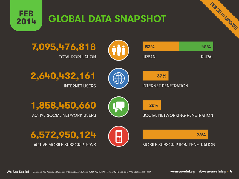 عدد سكان العالم يتجاوز 7 مليار نسمة منهم 2.6 مليار يتعاملون مع شبكة الإنترنت ومنهم 1.8 مليار يستخدمون شبكات التواصل الإجتماعي أما من يستخدمون الموبايل فيتجاوزن 6.5 مليار شخص