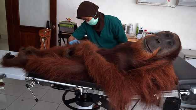 02- Ape op – A 14-year-old male orangutan is examined before surgery to remove air rifle pellets نشرت 03/01/2015 في 624 × 351 في أغرب صور تكنولوجية لعام 2014 → السابق التالي ← أبي أوب هو حبوان من فصيلة أنسان الغابة يستعد لإجراء عملية جراحية لاستخراج رشة خرطوش أصابته
