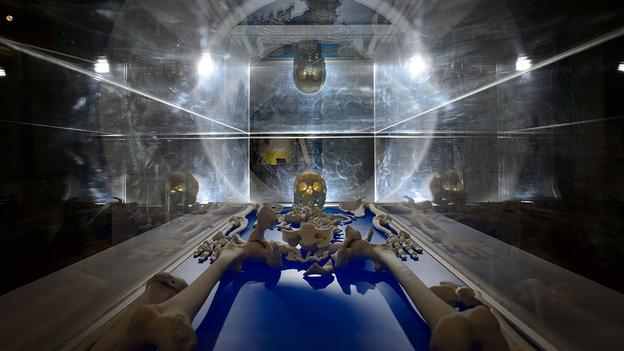 7- Royal relics – A replica of King Richard IIIs skeleton created using 3D printing displayed in Leicester where his remains were discovered نشرت 03/01/2015 في 624 × 351 في أغرب صور تكنولوجية لعام 2014 → السابق التالي ← عندما تم إكتشاف رفات الملك ريتشارد الثالث قام العلماء بإنتاج الهيكل العظمي له من خلال طابعة ثلاثية الأبعاد وعرض الهيكل في المكان الذي أكتشف فيه الرفات