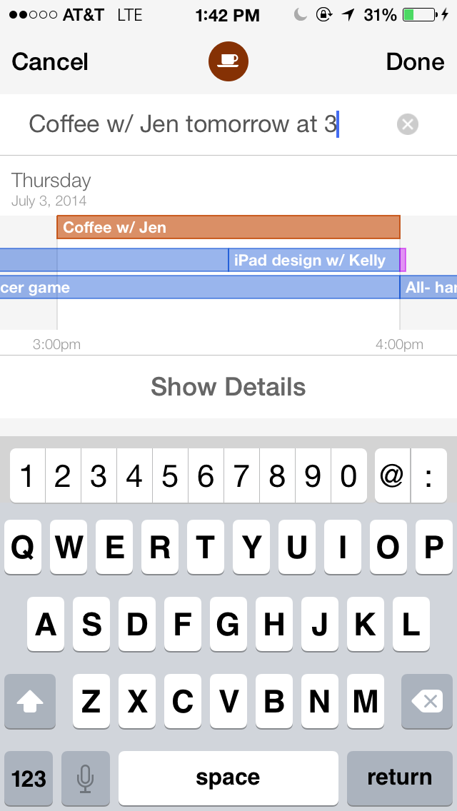 عندما تملي علي التطبيق اسم الاجتماع والعنوان فسوف يقوم أوتوماتيكيا بالبحث عن العنوان في تطبيق الخرائط لكي يحدد كيفية الطريق الذي ستسلكه للوصول إليه، كما سيقوم التطبيق بجمع الرسائل الإلكترونية والمستندات المتعلقة بالأجتماع لكي تكون جاهزة لك.