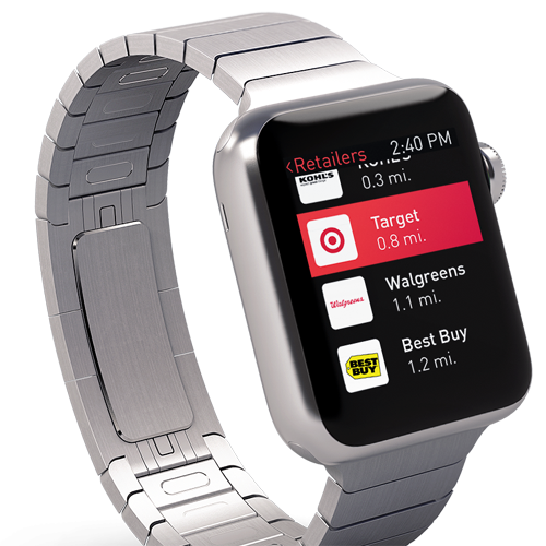 كما يظهر في الصورة فإنه بمجرد أقترابك من محل “تارجت” وهو من المحال التي تستخدم طريقة الدفع الجديدة سوف يظهر لك اسم المحل علي شاشة ساعتك.
