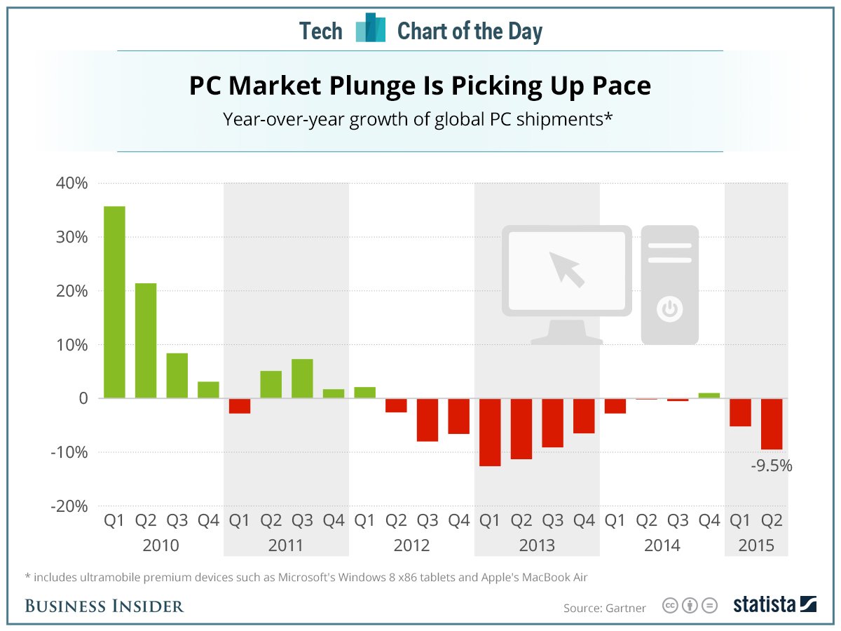 بدأ الأنهيار في سوق الحاسبات الشخصية بدأ من عام 2012 وفقا لتقرير مؤسسة جارتنر للأبحاث.
