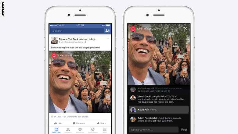 لذا إن كنتم من متابعي المشاهير مثل سيرينا وليامز، أو آشلي تيسدال، أو دواين ذا روك جونسون، أو مارثا ستيوارت على الفيسبوك، فستستطيعون قريبا رؤية تنبيهات وأخبار مشاركاتهم الحية. إذ أنكم ستتمكنون من رؤيتهم على السجادة الحمراء، أو وراء كواليس تصوير ما.