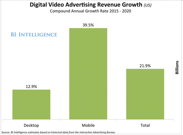 في تقرير نشرته أخيرا in-depth research أظهر أن سوف إعلانات الفيديو في الولايات المتحدة سوف يتجاوز عام 2015 مبلغ 5 مليار دولار، وسوف يزداد خلال الخمس سنوات القادمة بحوالي 22% سنويا.
