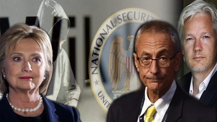 في أكتوبر عام 2016 بدأ “ويكيليكس” بنشر رسائل جون بوديستا، وهو رئيس الحملة الانتخابية لـ هيلاري كلينتون. وتتضمن تلك الرسائل معلومات عن حملات ترويج سرية لكلينتون من قبل أكبر شركات الأنترنت على غرار “جوجل” و”ياهو”، وعن الأساليب التي لجأت إليها كلينتون لمواجهة خصمها الجمهوري دونالد ترامب، بالإضافة إلى مقتطفات من كلمات كلينتون في مناسبات خاصة.