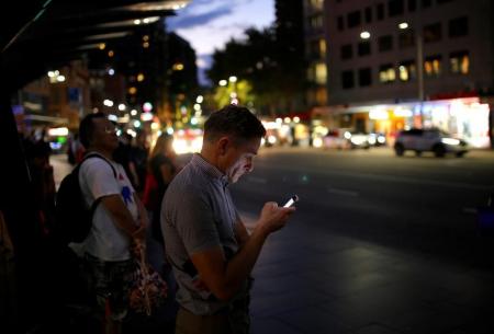 رجل يستخدم الموبايل في سيدني يوم 13 فبراير 2017