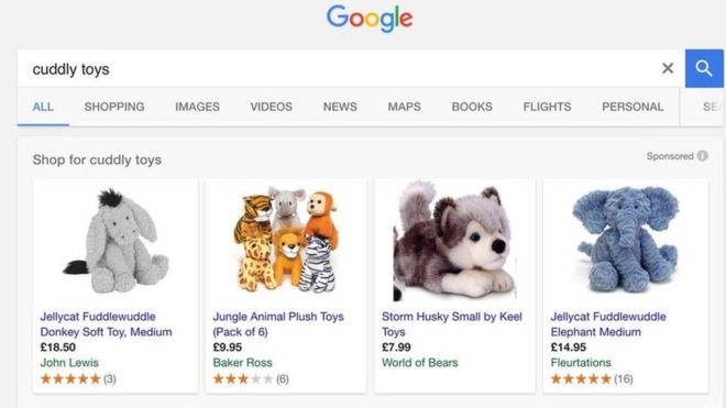 تظهر إعلانات خدمة جوجل للتسوق في مقدمة كثير من صفحات نتائج البحث على محرك جوجل