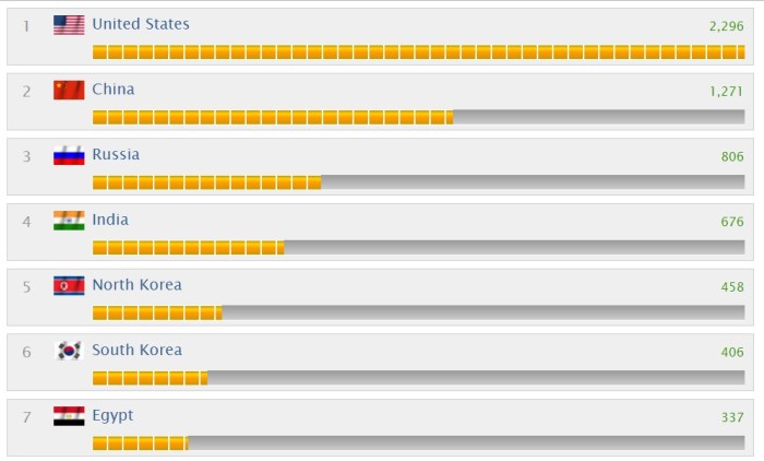 دخلت مصر ضمن قائمة أقوى 10 جيوش في العالم، وحافظت الولايات المتحدة الأمريكية على المرتبة الأولى في القائمة التي يصدرها موقع “Global Firepower”، المتخصص في رصد قوة الجيوش حول العالم بحسب ما تعلنه كل دولة عن إمكانياتها العسكرية، بينما جاءت مملكة بوتان في آخر القائمة التي تضم 133 دولة.
