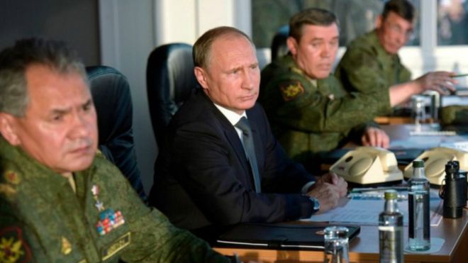 الرئيس الروسي فلاديمير بوتين مع هيئة اركان القوات المسلحة الروسية