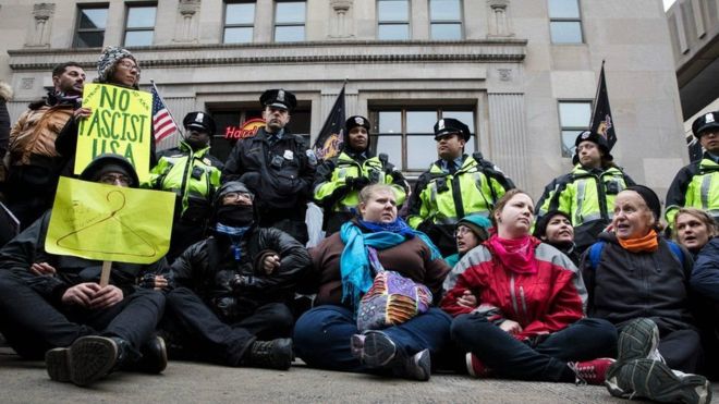 محتجون في الشارع ضد تنصيب ترامب رئيسا للولايات المتحدة