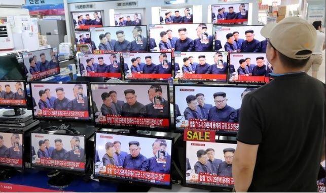 رجل يتابع تطورات تفجير القنبلة الهيدوجينة لكوريا الشمالية في محل إلكترونيات في سول عاصمة كوريا الجنوبية