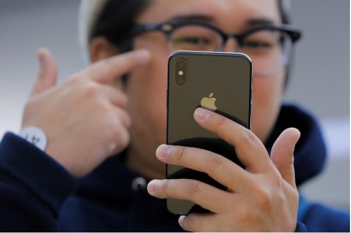 مستخدم يستعرض امكانيات موبايل أبل أيفون 10 الجديد في بكين يوم 31 أكتوبر 2017