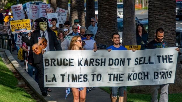 أثارت رغبة الأخوين “كوك” في شراء صحيفة “لوس انجليس تايمز” سابقاً احتجاجات من الجمهور الذي كانوا يخشون من تدخلهما في السياسة التحريرية للصحيفة