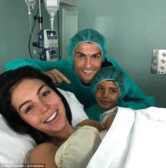 كرستيانو رونالدو وأبنه يحتفلان بابنته مع صديقته جورجينا رودريجيز في غرفة العمليات