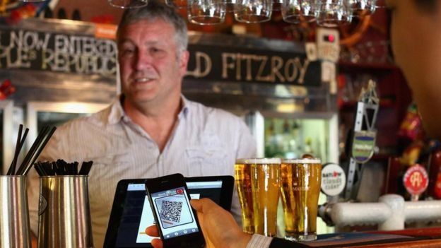 بإمكان الزبائن السداد باستخدام الموبايل وتطبيق “كيو آر” لقراءة الشفرات. وكانت حانة “أولد فيتزروي” هي أول حانة في أستراليا تقبل التعامل بعملة البيتكوين