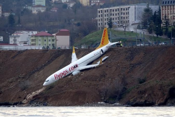ذكرت وسائل إعلام تركية يوم الأحد 14 يناير 2018 أن طائرة تابعة لخطوط بيجاسوس للطيران انزلقت عن المدرج في مطار ساحلي تركي وانتهى بها المطاف على منزلق منحدر على البحر الأسود لكن لم يصب أي من الركاب ولا الطاقم بأذى.