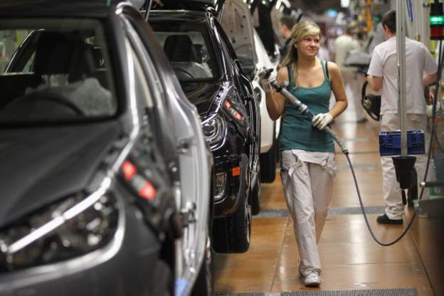 عاملة في خط تجميع سيارات فولكفساجن في ألمانيا