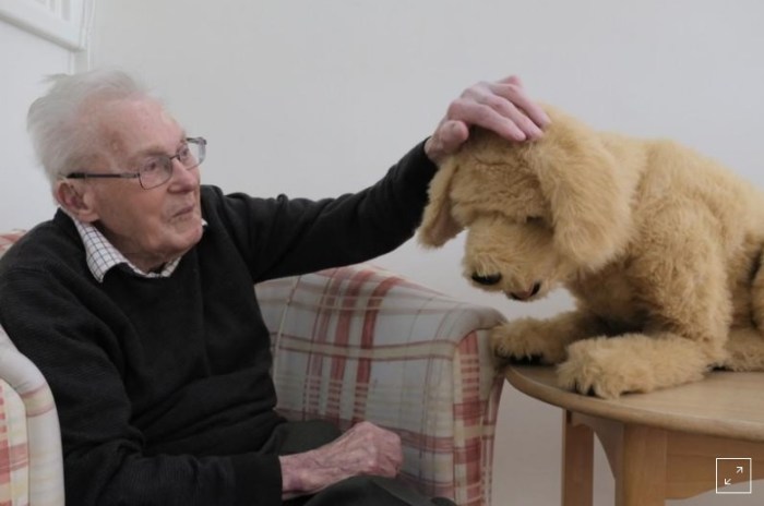 ويعيش جرانثام البالغ من العمر 99 عاما في تيمبلتون هاوس وهي دار بريطانية للرعاية جلبت بيسكت. ويقول الموظفون هناك إن الكلاب حتى وإن كانت آلية يمكنها أن تساعد في استعادة النزلاء للذكريات وتحفزهم لبدء أحاديث مع من يقومون على رعايتهم.