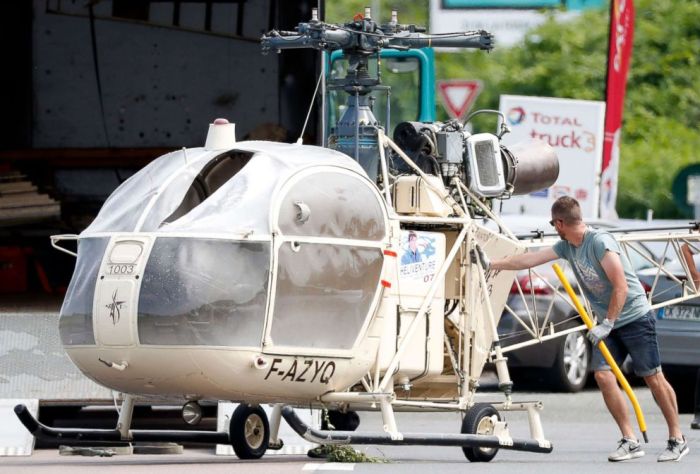 نقل المحققون طائرة هليكوبتر من طراز Alouette II يُزعم أن السجين الفرنسي رضوان فايد قد طار بها ومشتبه في كونهم من المتواطئين بعد هروبه من سجن Reau ، في Gonesse ، شمال باريس ، فرنسا ، 1 يوليو 2018