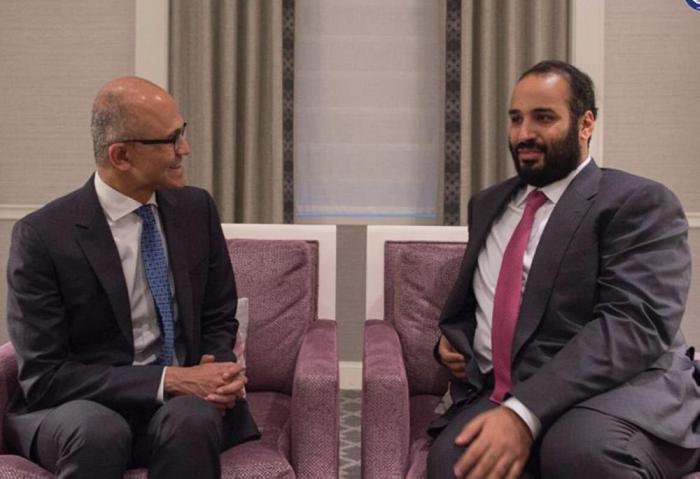 الأمير محمد بن سلمان ولي العهد السعودي في لقاء مع الرئيس التنفيذي لشركة مايكروسوفت ساتيا ناديلا
