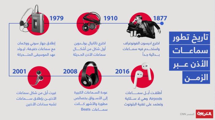إليكم التاريخ الطويل لتطور سماعات الأذنين في الانفوغرافيك أعلاه.