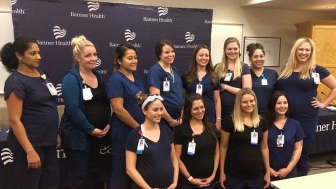 ربما بات الحمل الظاهرة الأكثر انتشارا في مستشفى مدينة ميسا بولاية أريزونا الأمريكية، حيث يتوقع أن تلد 16 ممرضة في المستشفى في آن واحد.