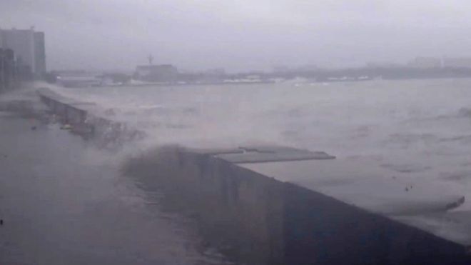 وأجلي الآلاف من منازلهم وسط تحذيرات من ارتفاع محتمل في مياه البحر التي تدفعها العاصفة إلى 6 أمتار.
