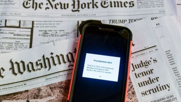 تلقى أكثر من 200 مليون موبايل في الولايات المتحدة رسالة نصية “رئاسية” في إطار تجربة جديدة على تحذير الأمريكيين وقت الكوارث والأزمات والهجمات.