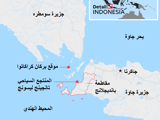 واستمر انبعاث الرماد من أناك كراكاتوا، وهي جزيرة بركانية أدى انهيار كتلة منها بسبب ارتفاع المد يوم السبت إلى توليد أمواج اجتاحت مناطق ساحلية على جانبي مضيق سوندا الواقع بين جزيرتي جاوة وسومطرة.