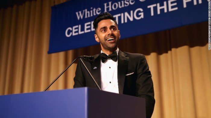 حسن منهج يتحدث على المسرح خلال حفل عشاء جمعية مراسلي البيت الأبيض في عام 2017