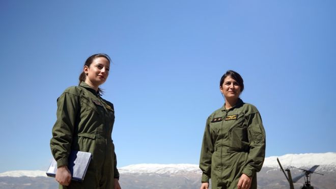 قائدتا الطائرة في سلاح الجو اللبناني شانتال كالاس و ريتا زاهر
