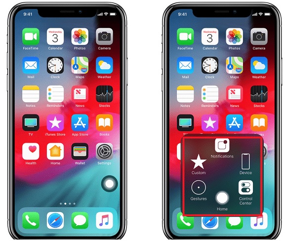 والأفضل من ذلك أنه يتيح لك أن تؤدي وظائف مختلفة حسب ما إذا كنت تنقر بنقرة واحدة أو نقرًا مزدوجًا أو الضغط طويلًا أو 3D Touch. إحدى هذه الوظائف هي قائمة منبثقة يمكن استخدامها للوصول بسرعة إلى المزيد من الوظائف مثل: مركز التحكم Control Center ولقطة الشاشة Screenshot، وتدوير الشاشة وقفل الشاشة وغير ذلك.