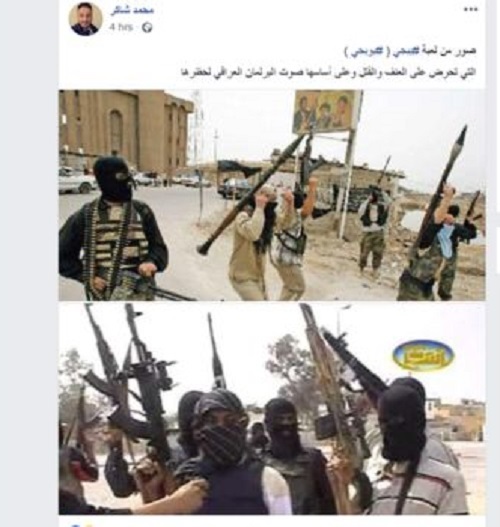 ونشر محمد شاكر صورا، لمجموعات مسلحة في العراق، مرفقا إياها بتعليق قال فيه :” صور من لعبة ببجي، التي تحرض على العنف والقتل، وعلى أساسها صوت البرلمان العراقي لحظرها”.