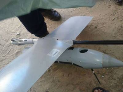 طائرة إسرائيلية بدون طيار بعد أن أسقطتها حماس عن طريق السيطرة الإلكترونية عليها