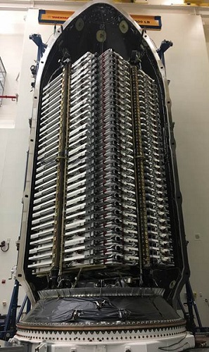First 60 @SpaceX Starlink satellites loaded into Falcon fairing. Tight fit. pic.twitter.com/gZq8gHg9uK