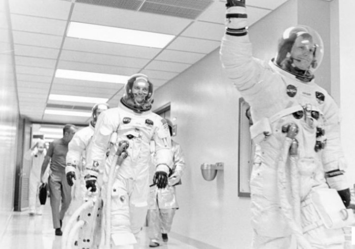 نيل أرمسترونج أول إنسان تطأ قدماه سطح القمر يلوح في كيب كنافيرال بفلوريدا