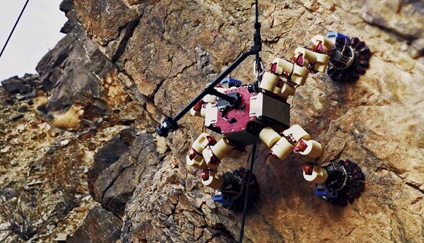 الروبوت المتسلق “ليمور” بعد تسلق جرف في وادي الموت بكاليفورنيا. يستخدم الروبوت تقنية خاصة ساعدت في الوصول إلى سلسلة من الروبوتات الجديدة التي تعمل على الطرق الوعرة والتي يمكنها استكشاف العالم الآخر من علي سطح القمر – ناسا