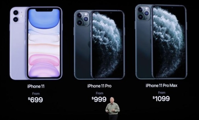 وسيزود الموبايل أيفون 11 برو بثلاث كاميرات في الخلف – بزاوية عريضة، وعدسة مقربة، وعدسة عريضة للغاية. وسيستطيع الموبايل الجديد التقاط التسجيلات المصورة بالكاميرات الثلاث والكاميرا الأمامية معا، وبسعر يبدأ من 999 دولارا. وسيبدأ الموبايل أيفون 11 برو ماكس المزود بشاشة أكبر بسعر 1099 دولارا. والموبيلات الجديدة متاحة لطلبات الشراء من يوم الجمعة 13 سبتمبر على أن يبدأ الشحن في 20 سبتمبر.