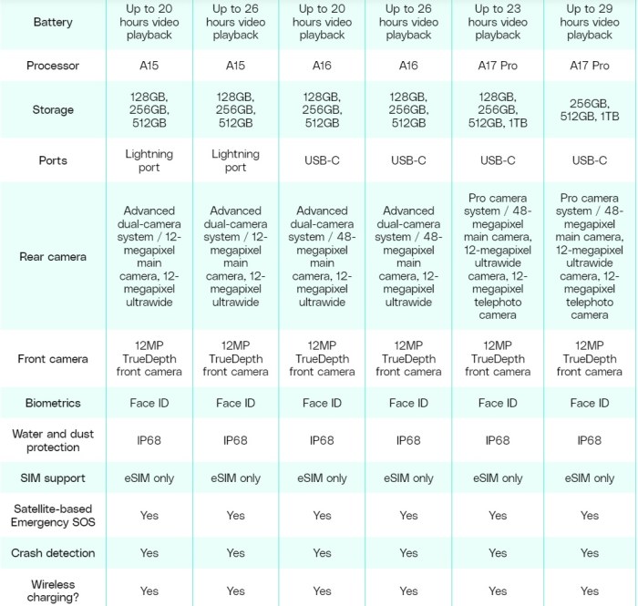 لمساعدتك في اتخاذ القرار، قمنا بتجميع تحليل تفصيلي لكل المواصفات لكيفية مقارنة طرازات أيفون 14 مع تشكيلة أيفون 15 بأكملها.